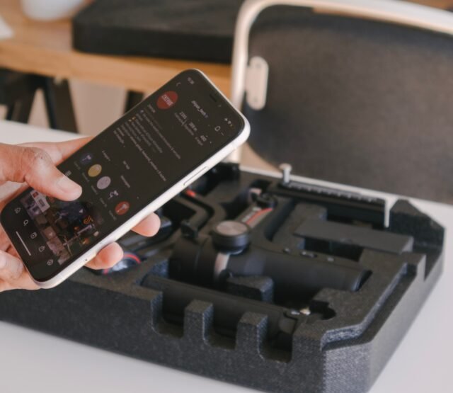 Una mujer toma su teléfono, busca un lugar que tiene disponible en su baño frente al espejo y lo enciende…