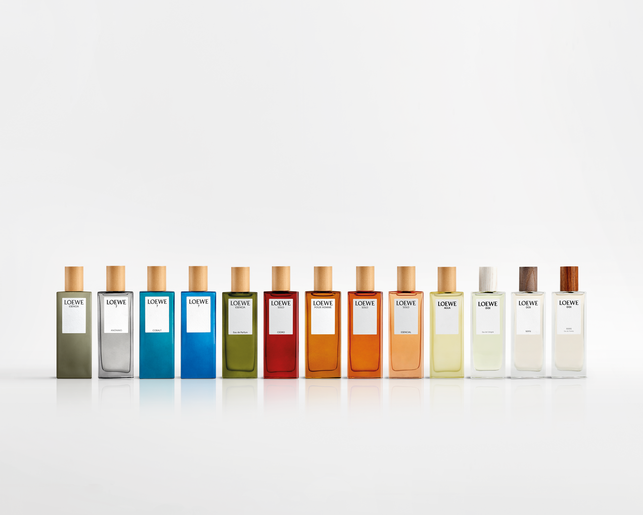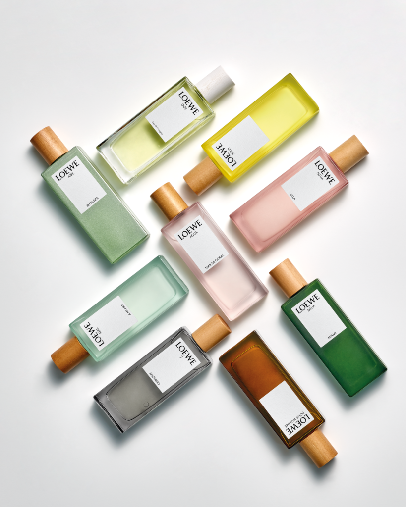 El BOTANICAL RAINBOW se compone de ocho familias de fragancias, que fueron recodificadas internacionalmente con un nuevo frasco en una grama de colores vivos, que juntos componen un caleidoscopio olfativo. Cada familia, tono y olor captura una faceta de la marca: LOEWE 001, LOEWE AURA, LOEWE AGUA, LOEWE 7, LOEWE SOLO, LOEWE AIRE, LOEWE ESENCIA y LOEWE POUR HOMME.